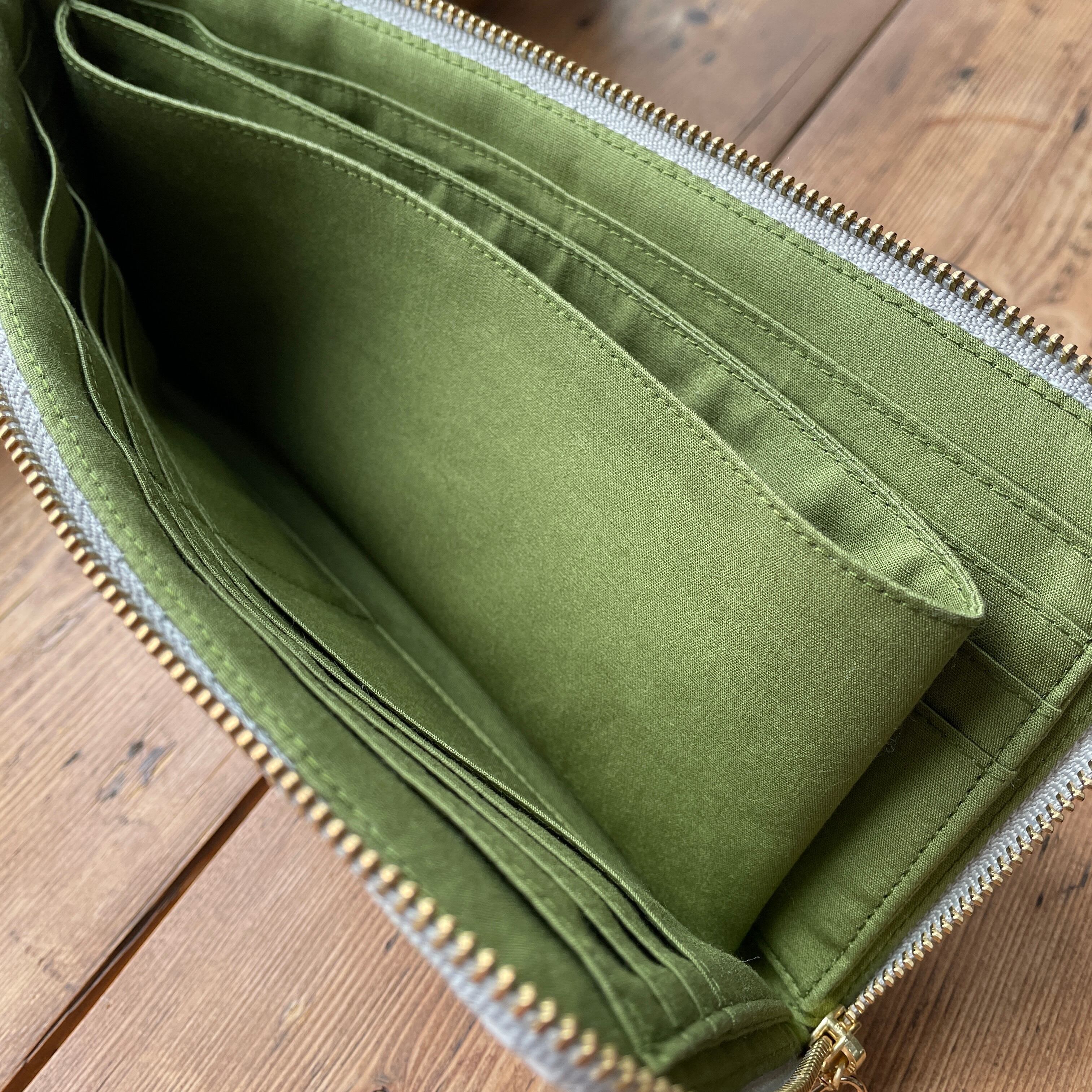 仕様 開閉はファスナー、内側にオープンのコインポケット1つ、カード入れ12ヶ所、仕切りの無いポケット2つ、外側にポケット1つ