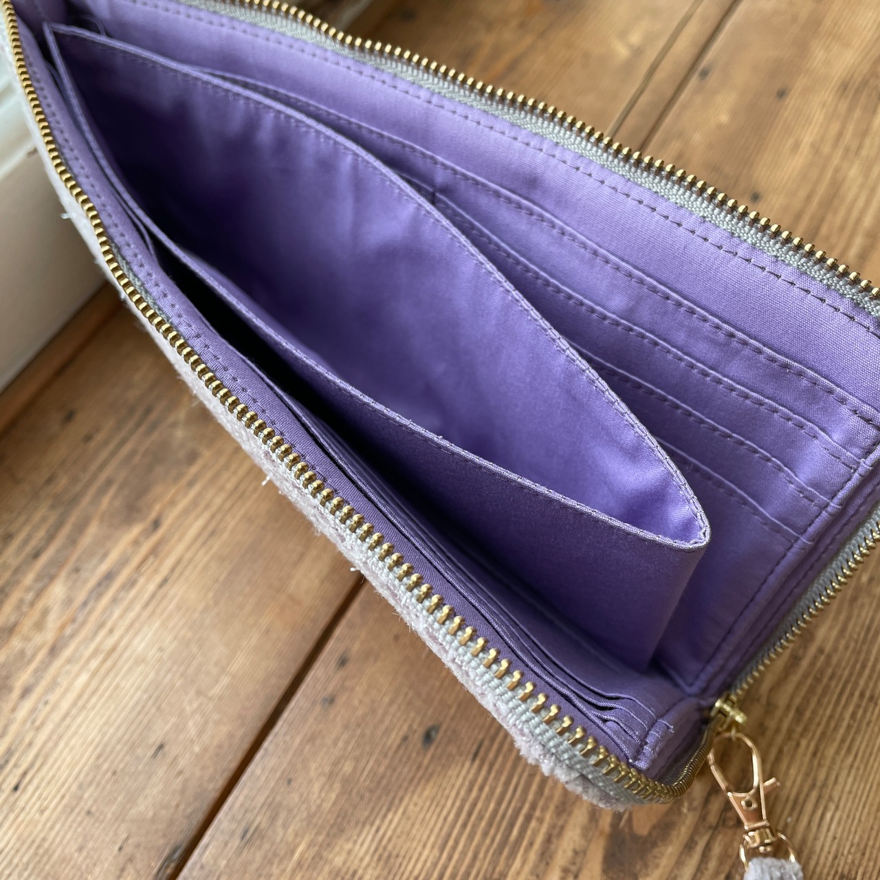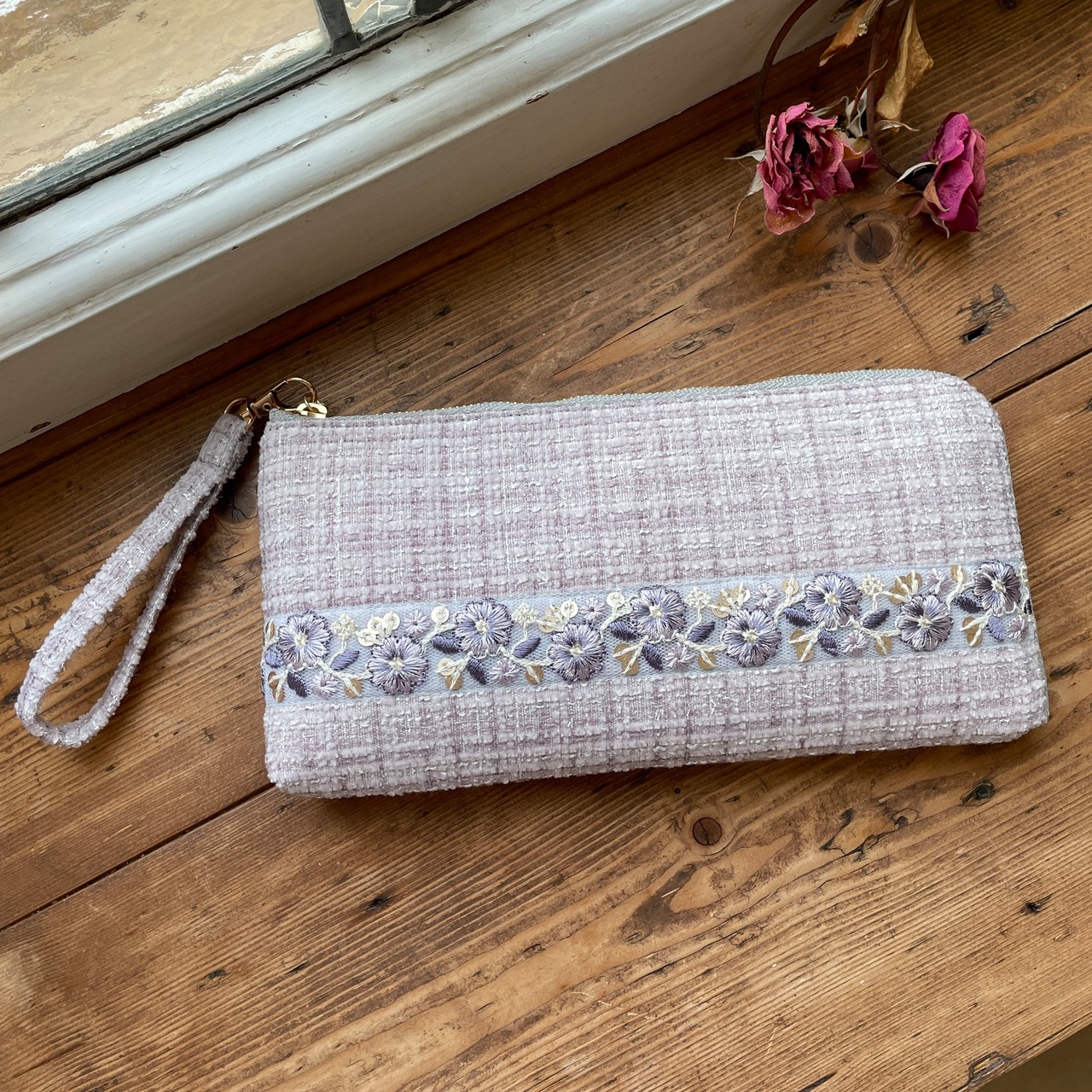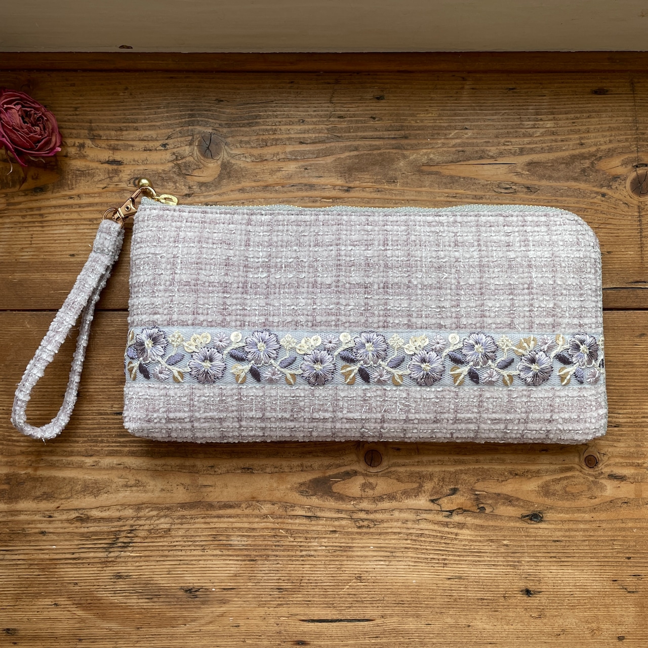 インド刺繍リボンのL字長財布(パープル系ツイード)