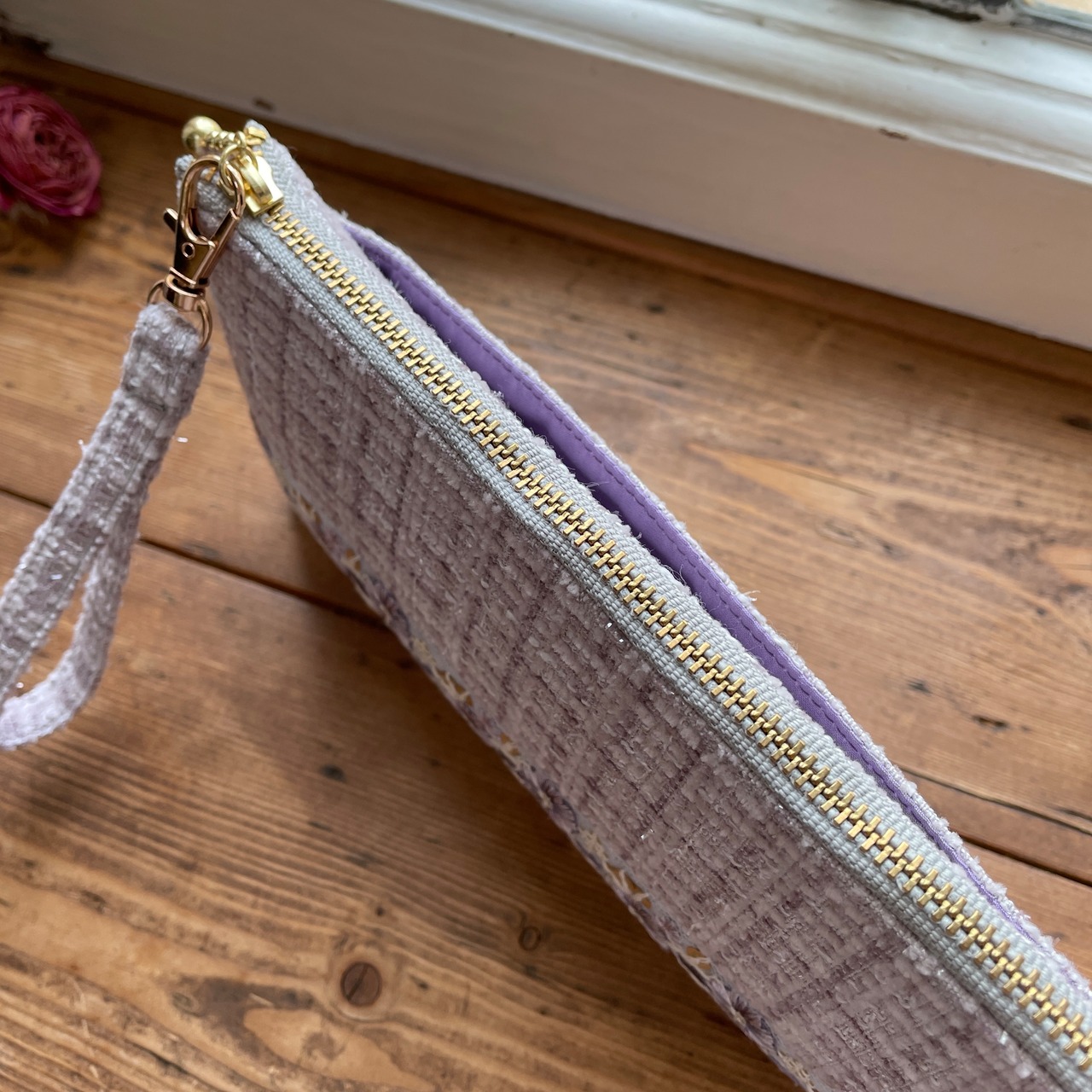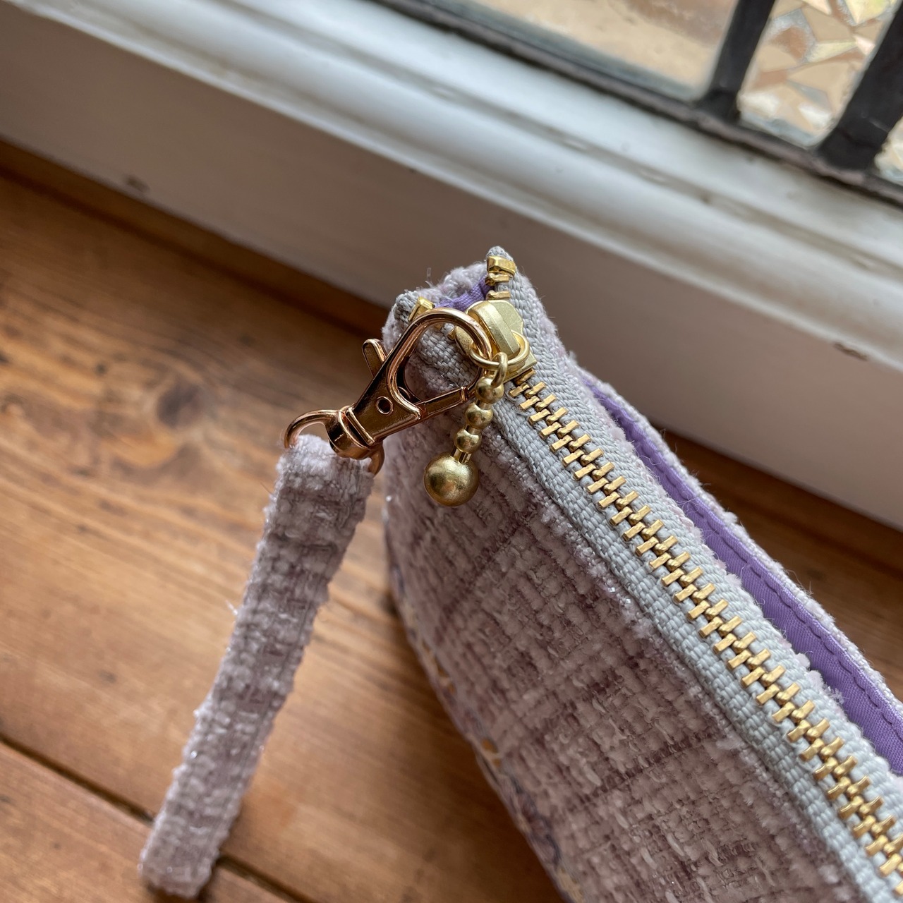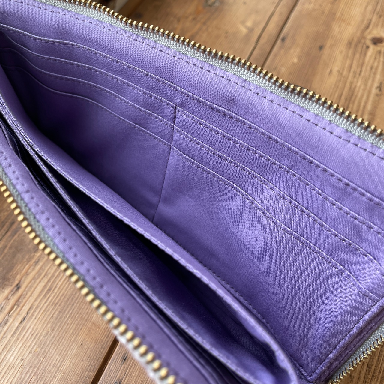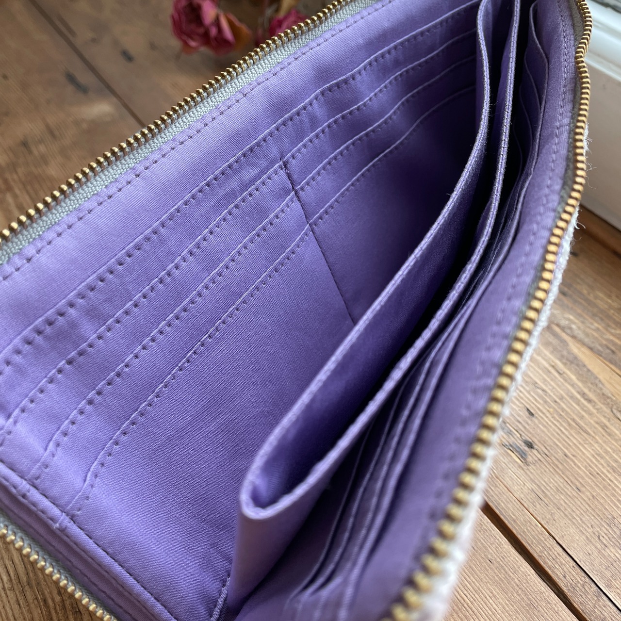 インド刺繍リボンのL字長財布(パープル系ツイード)
