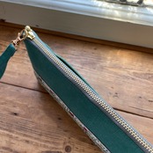 本体に使用したディープフォレストカラーのリネン生地で、全体的に落ち着いた印象になりました。