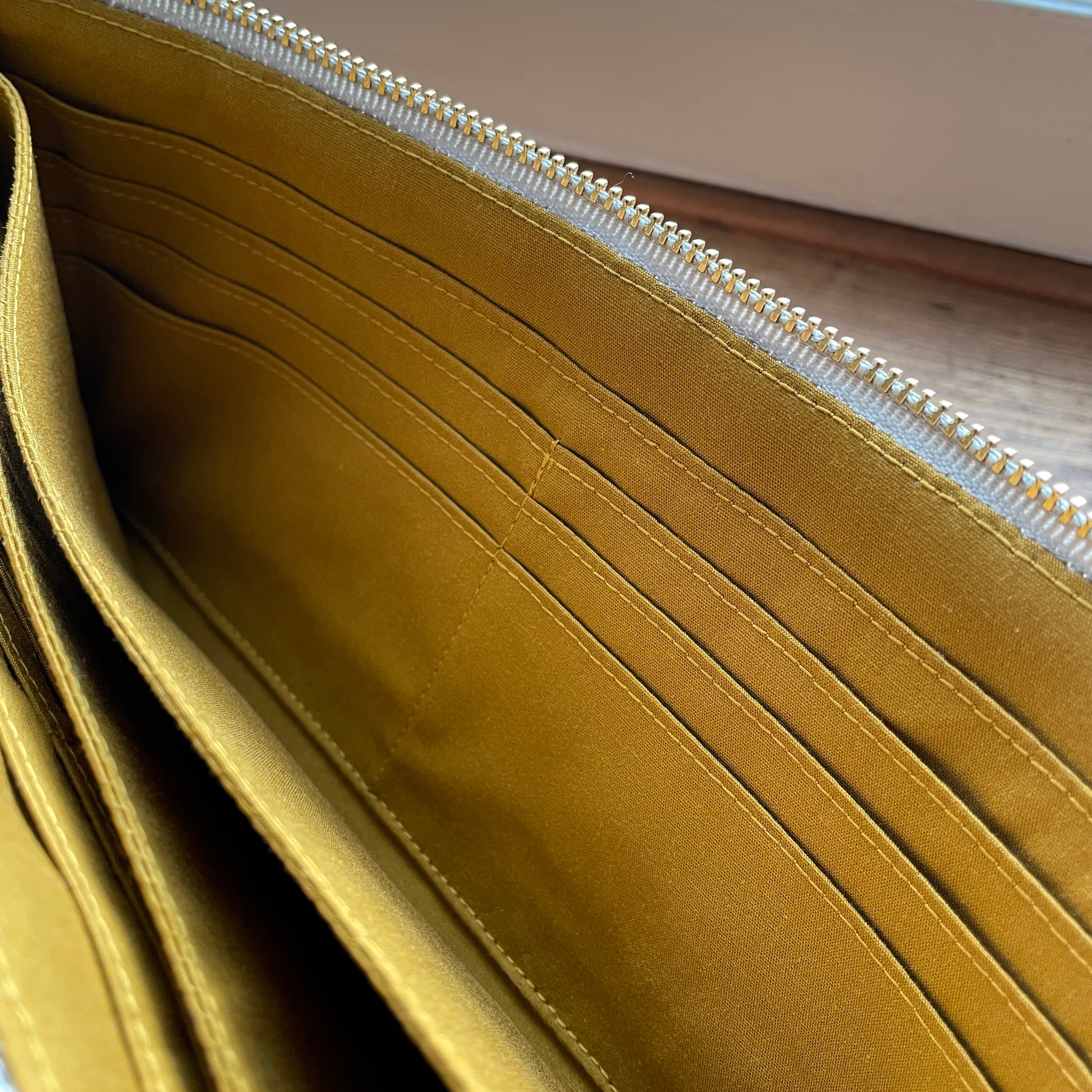 仕様 開閉はファスナー、内側にオープンのコインポケット1つ、カード入れ12ヶ所、仕切りの無いポケット2つ、外側にポケット1つ