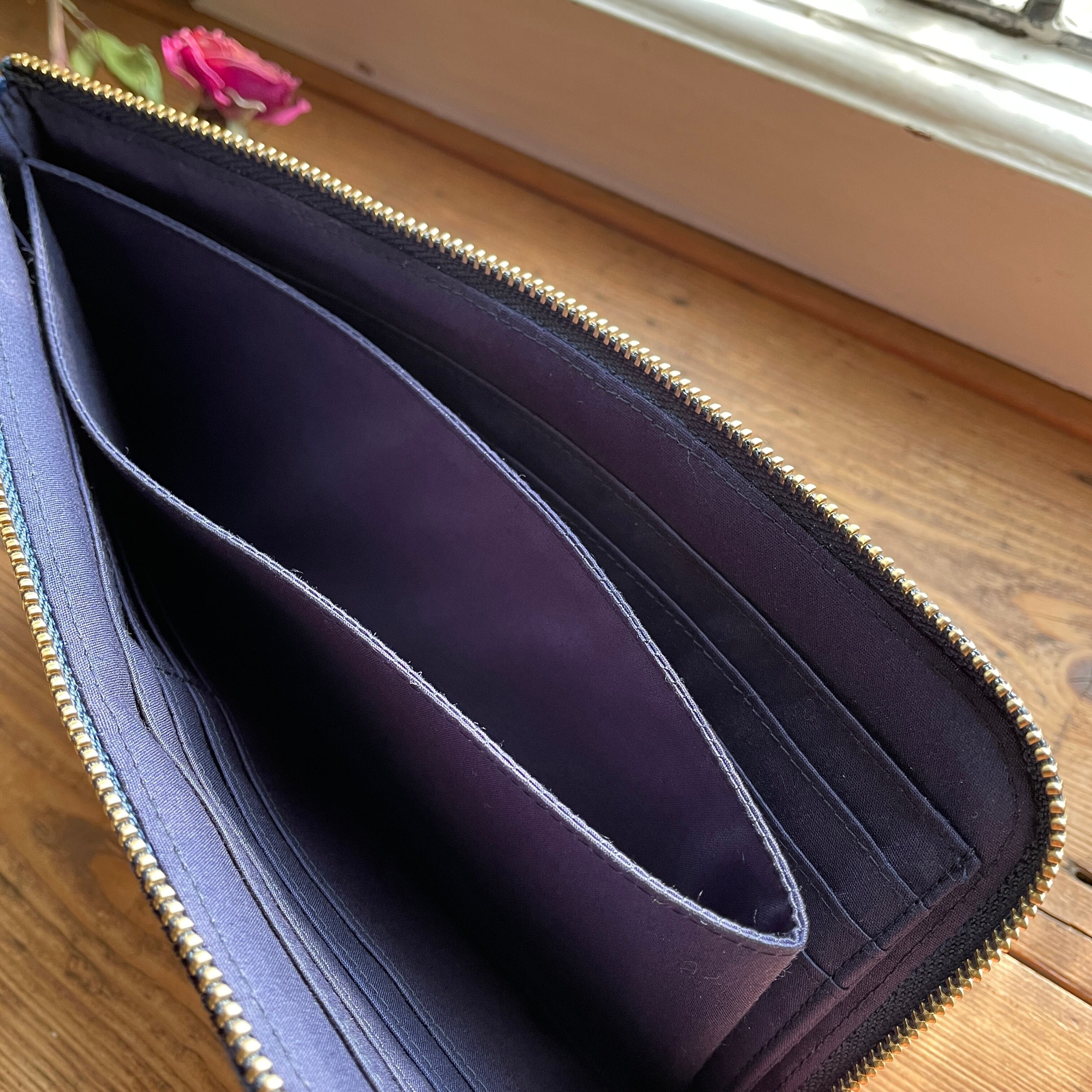 仕様 開閉はファスナー、内側にオープンのコインポケット1つ、カード入れ12ヶ所、仕切りの無いポケット2つ、外側にポケット1つ
