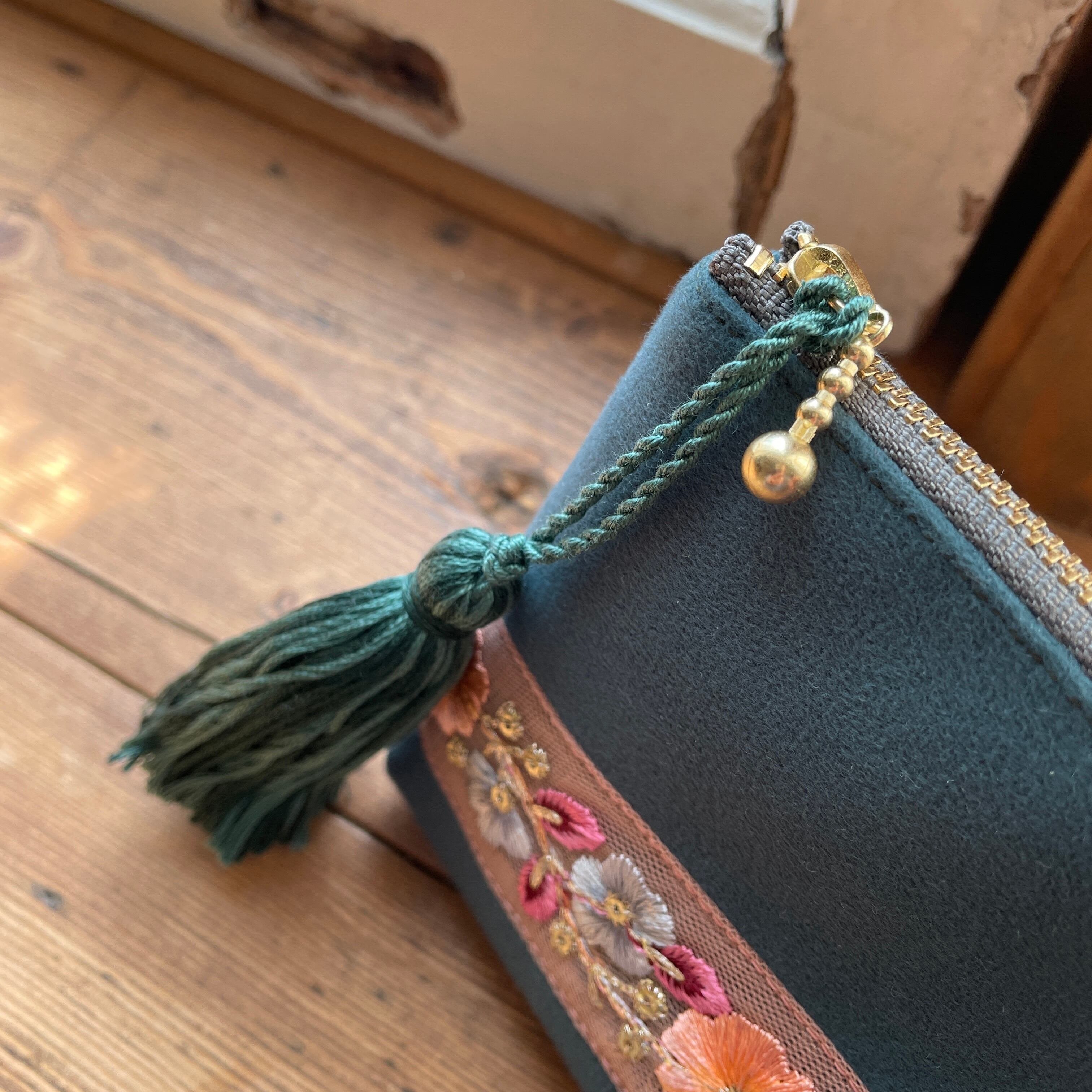 引き手に刺繍糸で作ったタッセルを合わせて、エレガントな印象をプラスしました。