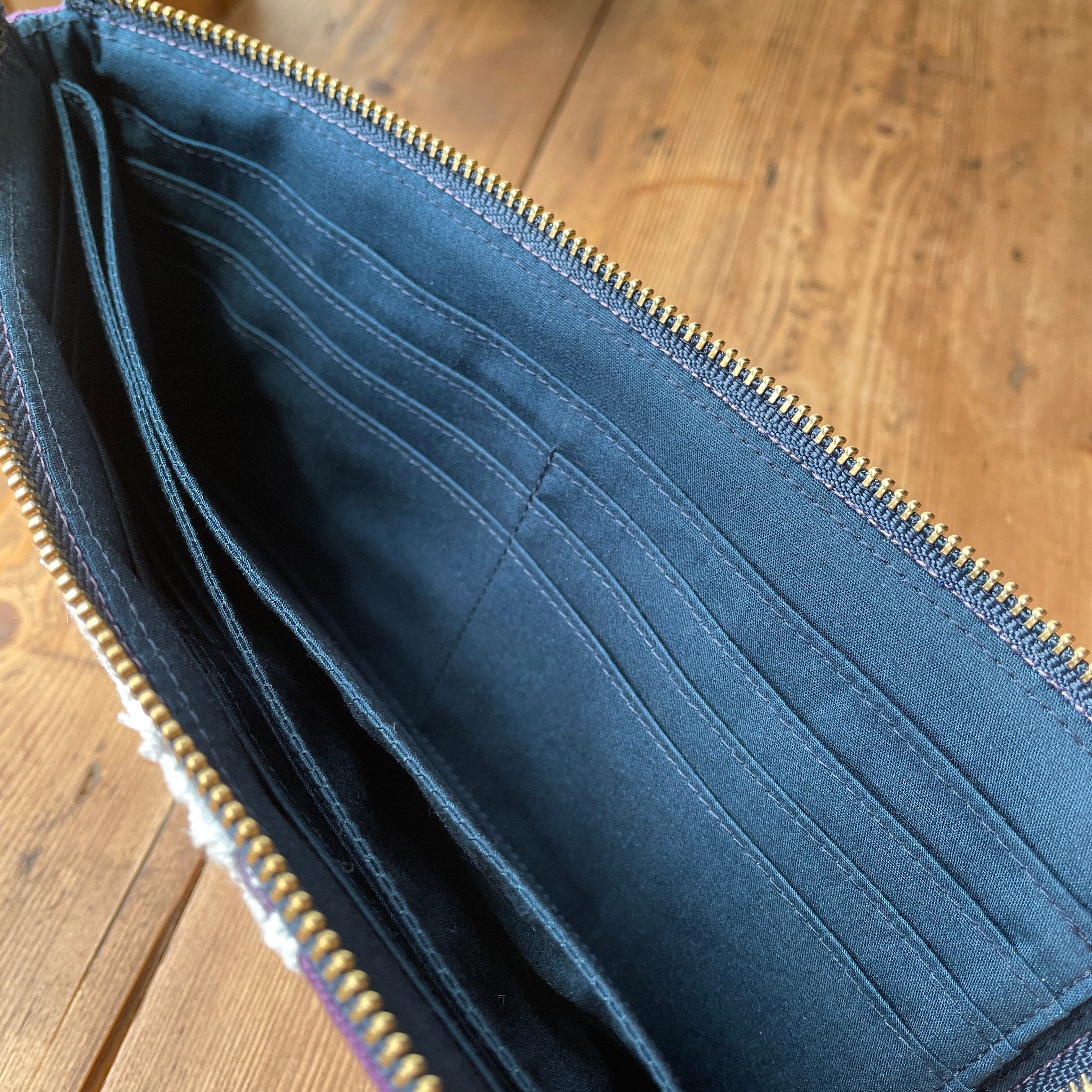 仕様 開閉はファスナー、内側にオープンのコインポケット1つ、カード入れ12ヶ所、仕切りの無いポケット2つ、外側にポケット1つ